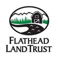 Flathead Land Trust. although the image is a bit more complex than the first two (mountains, barn, trees, stream), the graphics are nice and simple. I also like that FLT has a few variations on their logo, with the text to the side or underneath depending on where it’s used.
